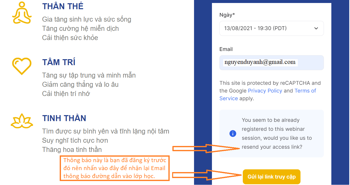 truy cập của bạn hoặc đăng ký lại bằng đúng email đó để nhận lại liên kết truy cập.